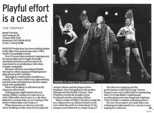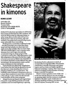 Thanks for thought-provoking interpretation of King Lear, Our school really enjoyed the performance. It has kept them discussing the play in a most animated fashion all week! Coffs Harbour High School. (King Lear 2002)